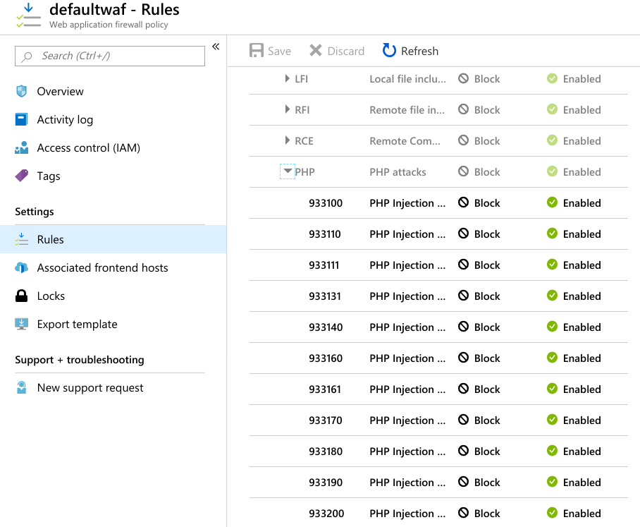 If required, you can enable/disable WAF rules:
