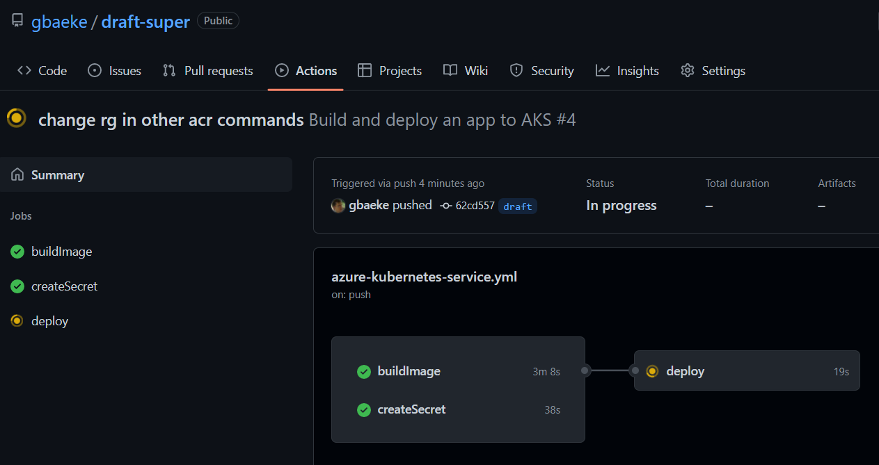To see an example of connecting to the deployed cluster and creating a namespace, see k8s-provider-config.yaml and k8s-namespace.yaml in the repo. The resource k8s-provider-config.yaml will use the example-kubeconfig secret created above to connect to the AKS cluster that we created in the previous steps.