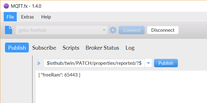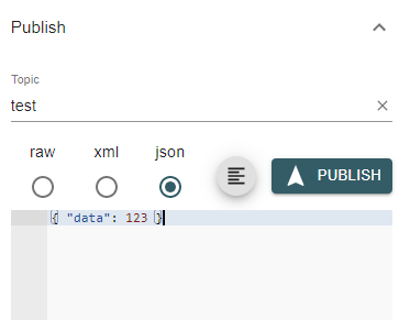 Now, click Connect to connect to Mosquitto. With MQTT, you send data to topics of your choice. Publish a json message to a topic called test as shown below: