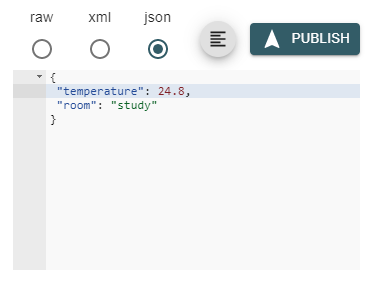 Let’s post some JSON with the expected fields of temperature and room to our MQTT server: