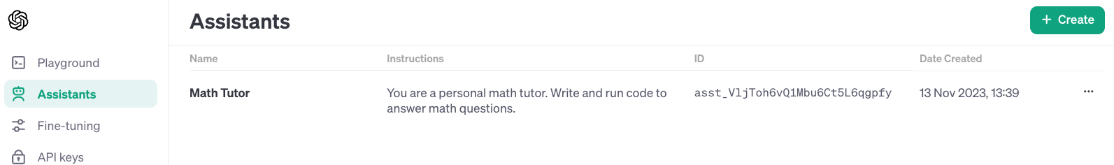 - Once you save the assistant, you get its ID. The ID will be used in our code later