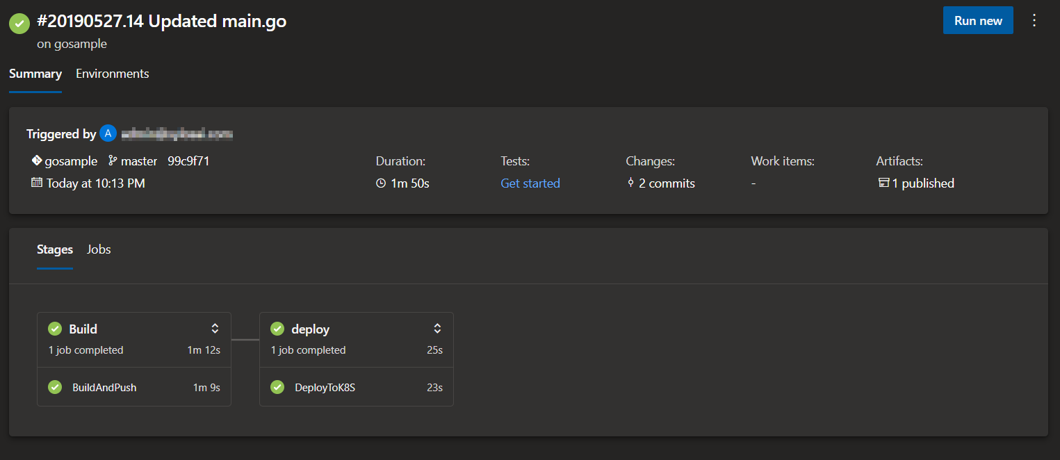 Note that the ingress of the Go app has an annotation (in realtime.yaml, in the git repo) to issue a certificate via cert-manager. If you want to make that work, add an extra task to the pipeline that installs cert-manager: