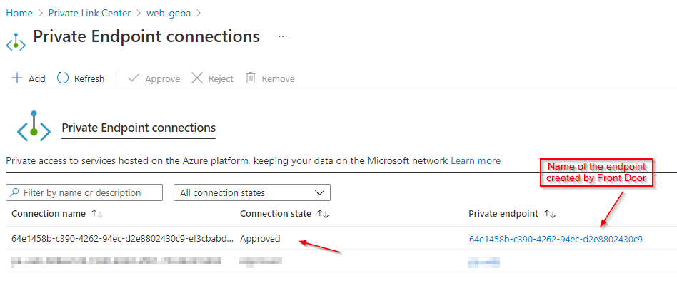 In this post, we published a Kubernetes Ingress Controller (ingress-nginx) via an internal load balancer and Azure Private Link. A service like Azure Front Door can use this functionality to provide external connectivity to the internal Ingress Controller with extra security features such as Azure WAF. You do not have to use Front Door. You can provide access to the Ingress Controller from a Private Endpoint in any network and any subscription, including subscriptions you do not control.
