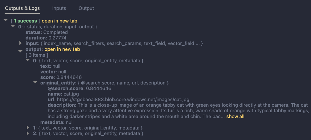 In addition, the user’s question is rewritten to only send the main keywords to the search. The type of search is a keyword search. It is not a similarity search based on vectors.