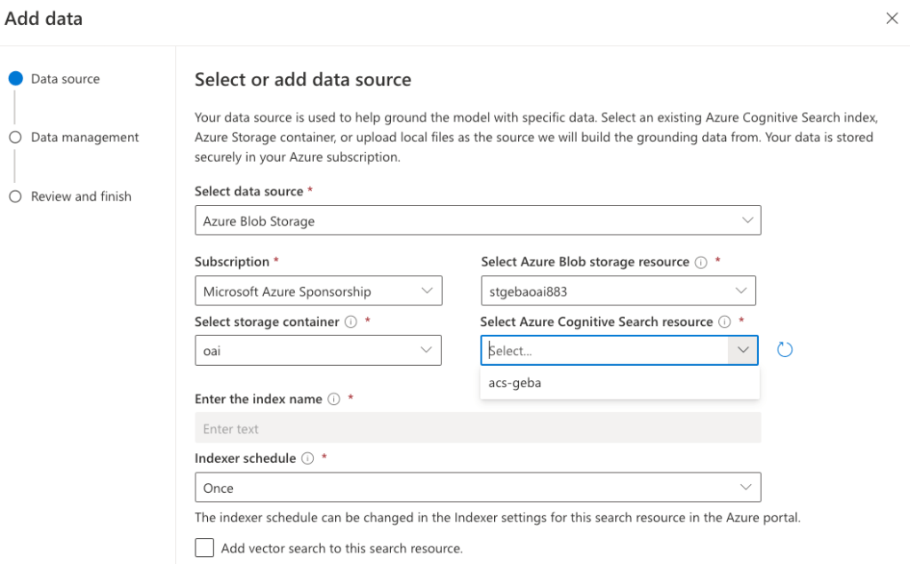 I have written before about Azure OpenAI on your data. For a refresher, see Microsoft Learn. In short, Azure OpenAI on your data tries to make it easy to create an Azure AI Search index that supports advanced search mechanisms like vector search, potentially enhanced with semantic reranking.