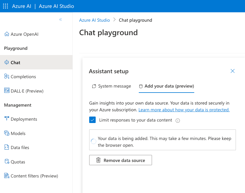 st.session_state.kernel.add_service(chat_service)Above, there are two important settings to make Azure OpenAI on your data work: