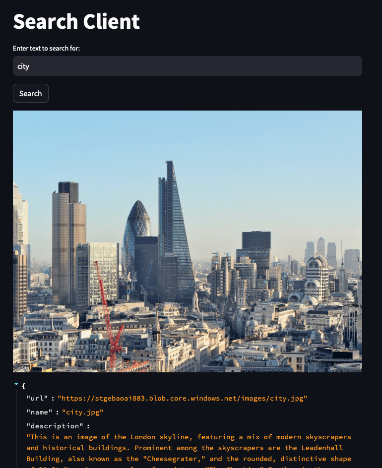In what follows, I will show snippets of a full sample you can find on GitHub. The sample uses Streamlit to provide the following UI: